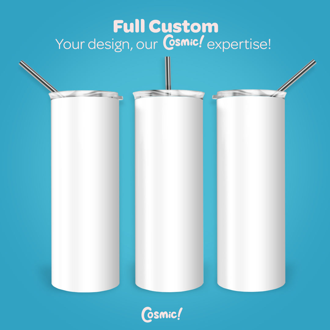 Every Cosmic! Events tumbler comes with a non slip bottom, metal straw, straw cleaner, and a handful of goodies to say thank you!